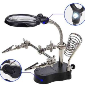 TERCERA MANO C/LUPA LUZ LED Y BASE P/CAUTIN «HH-6»