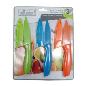 CUCHILLO PARA COCINA EN SET 3PCS C/COBERTOR SURTIDO COLORES «LHC-9585»
