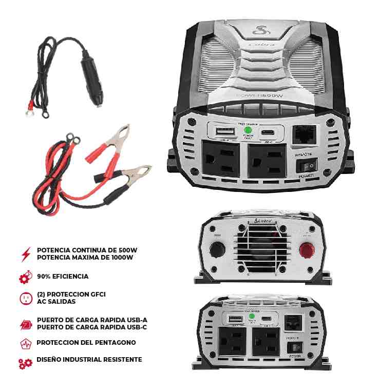 INVERSOR 12V-110V 500W RMS / 1000W PICO C/PUERTO USB V8 TIPO «CPI-500W»