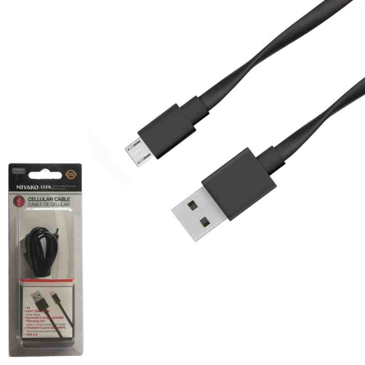 CABLE USB A MICRO USB 5 PINES ANDROID HUAWEI,SAMSUNG, PLANO NEGRO «M-287M-BL 3FT»