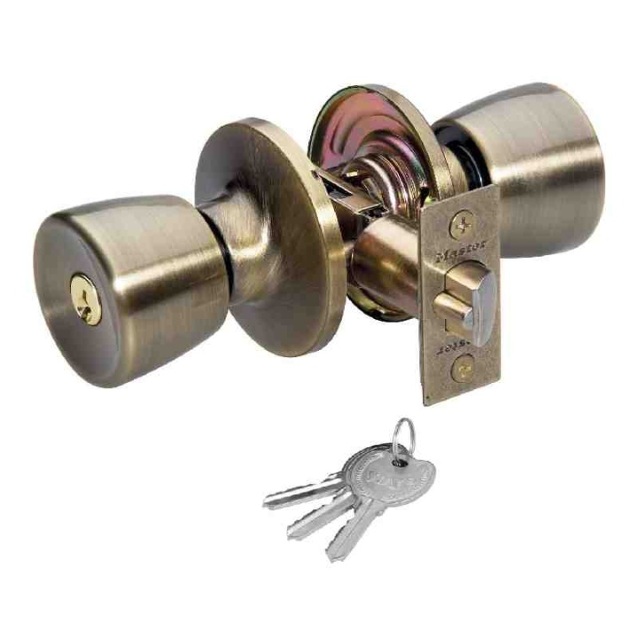 CERRADURA CILINDRICA LATON ANTIGUO CON SEGURO, C/LLAVE «RB-588AB-BL»