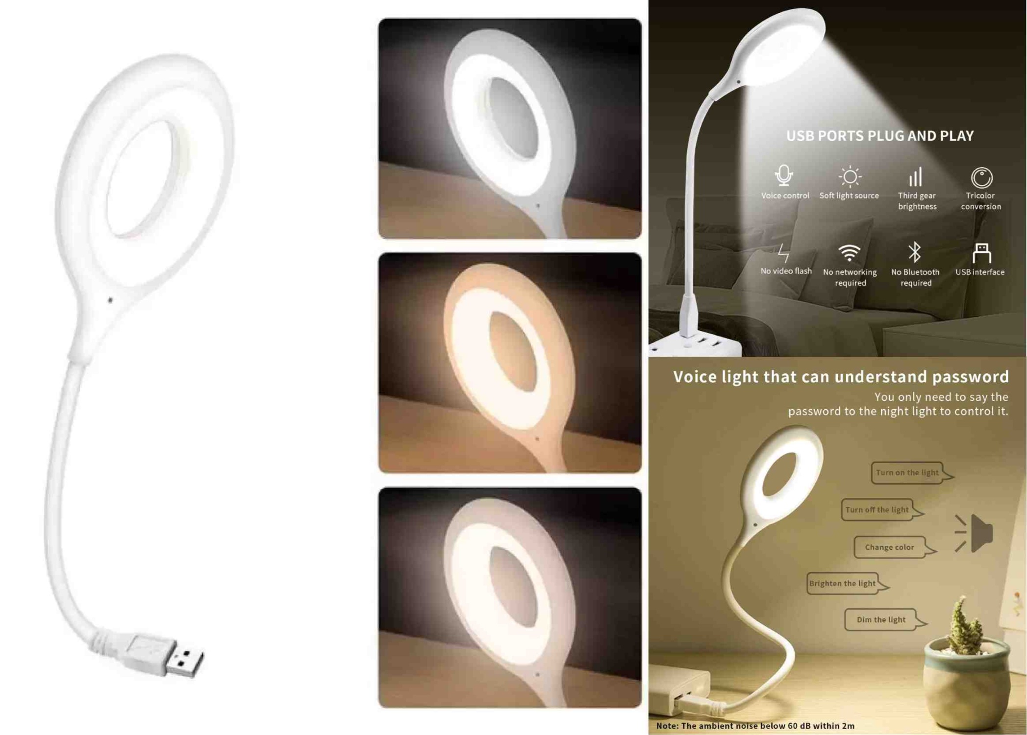 LAMPARA DE NOCHE LED 9W 6000K DC USB 5V 2AMP P/LAPTOP C/CONTROL DE VOZ «TL-9369»
